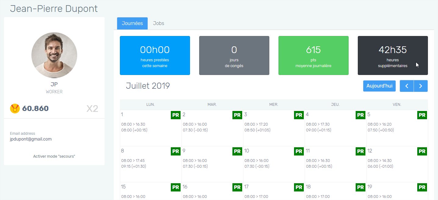 Les workers ont également la possibilité de consulter leur situation d'heures extra dans leur historique de journées dans l'App WAD.